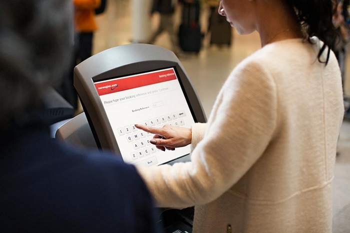В киосках самообслуживания (fast check-in kiosks) - всё, что вам нужно сделать, это ввести номер бронирования и распечатать посадочный талон. Если у вас с собой зарегистрированный багаж - с выданными киоском бирками сдайте его в багажный автомат. А если детская коляска или автокресло - подойдите к стойке регистрации, уже после самостоятельного check-in.